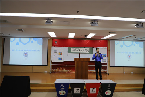 活动特邀松江区城管执法局经开区中队副队长蔡菁作为主讲人,带来一场关于垃圾分类知识的讲座,从“一鼓励、一严禁、两分类”到垃圾分类标准、常见误区带来一一解读。会上,蔡队2次表扬了企福物业在垃圾分类工作上的细致,特别强调了“定时定点投放”的方式,并建议在场党支部可以去企福参观学习。