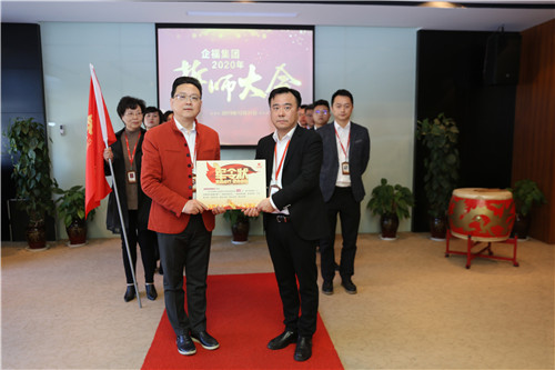 紧接着,企福集团总裁张建军为企福置业、园祥公司、企翔公司、企福物业分别颁发2020年军令状,再由各子公司总经理给每个团队颁发军令状。千斤重担众人挑,人人头上有指标。2020年的年度目标从公司、团队,具体落实到每一个人。