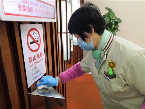在这场“战疫”中,企福物业保洁阿姨们也是主力军。她们每天第一个到达企福科技园区、企福商务楼,对所有的公共区域进行消毒工作。电梯、大厅、洗手间、垃圾桶每2小时消毒一次,其他公共区域为每天进行2次以上消毒。